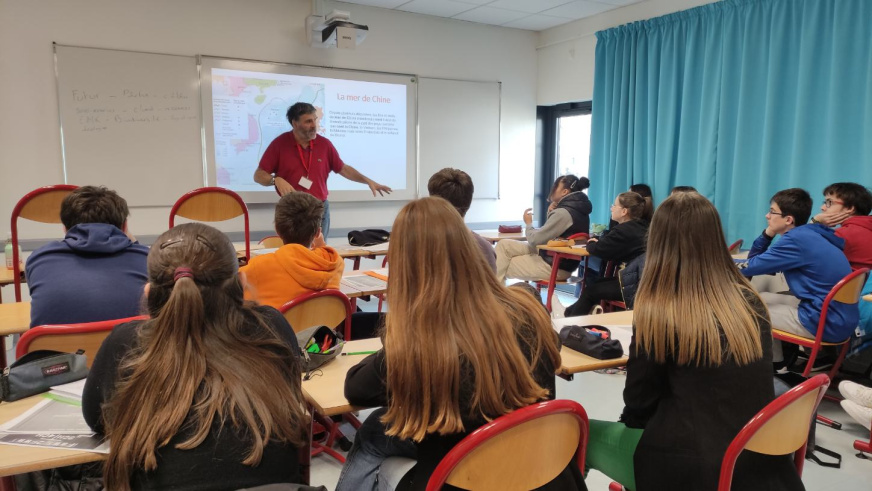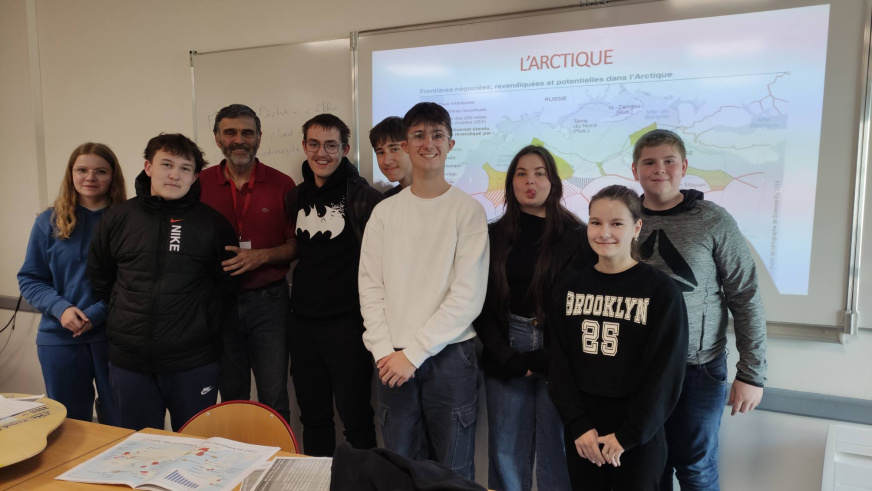 Il s’agit pour ces jeunes gens qui vont s’orienter en fin d’année d’envisager de nouveaux espaces d’activités et de comprendre combien les mers et océans sont des espaces convoités, régis par des rapports complexes entre états. La présentation de M. Arzel complète ainsi celle de M. Delliancourt du CINAV de Brest ( https://www.cinav.fr/ ) , davantage orientée vers les métiers de la mer.